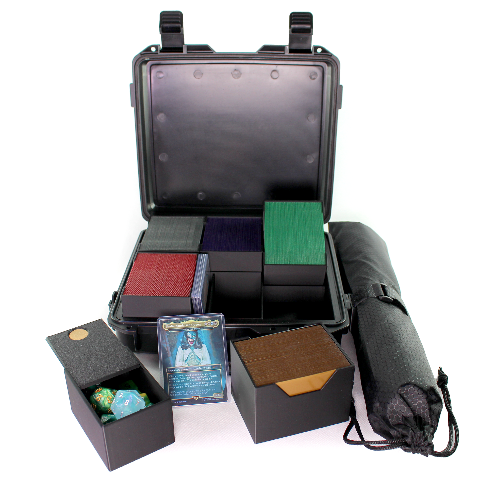 Built for Magic nights, game stores, and tournaments alike.Holds 5 or 6 sleeved Commander decks, dice, and your playmat.Watertight seal and rugged build keep everything protected.Modular design lets you carry everything you need.